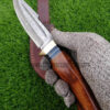 This hidden tang knife features a razor-sharp blade that excels in various cutting tasks. The rich rosewood handle not only enhances grip but also adds a touch of class. The inclusion of Pakka wood and brass spacers further accentuates the blade’s allure. With a brass guard for added safety, this knife is both a functional tool and a work of art.